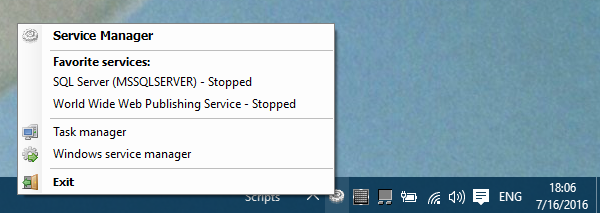 Windows system tray utility for quick service management — start, stop, and restart services without opening the service manager.